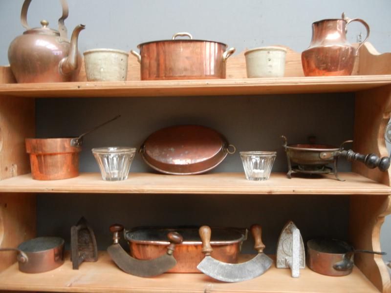 To decorate your kitchen accessories Many old kitchens, nineteenth or early twentieth, brass pans,copper pans pots, grinders, presses, cutting bread, chocolate mold, glassware, decanters ....
