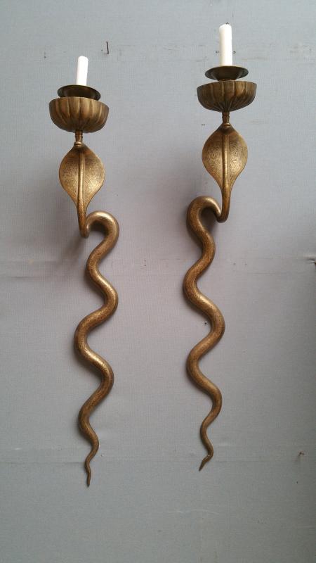 Bronze snakes sconces ; good state circa on 1900; they can be electrified tall size: H 31" - W 5" H 79 cm - W 13 cm Item 4379