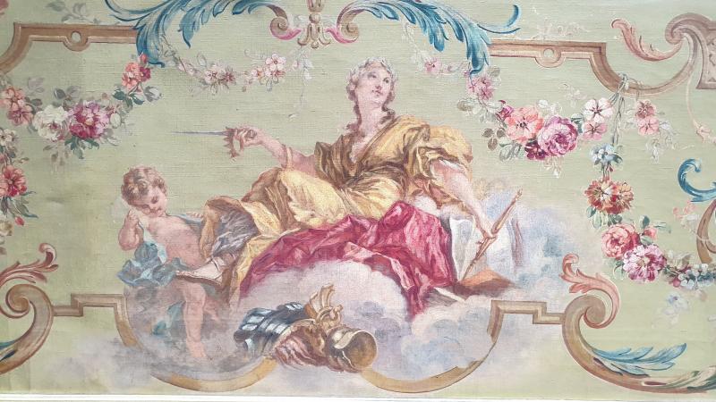 18 C.th painting ,oil on canvas ,top of door ,original old mansion house in Rouen 1m 37 x 52,5 cm ,good condition of use 54" x 20" 3/4 1m 37 x 52,5 cm Ref 4655