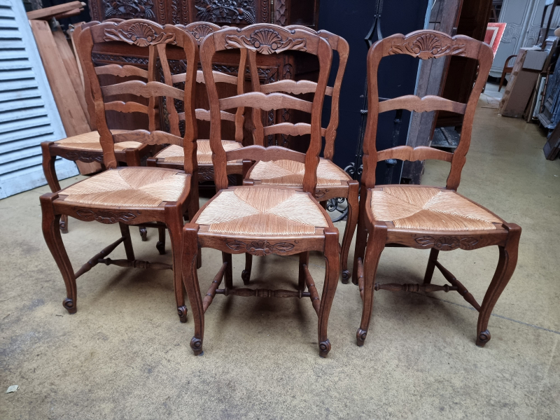 Set of 6 oak country french chairs , Good size H 94cm W 44 cm référence ;5086