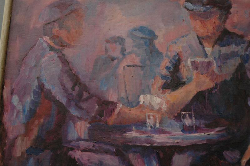 oil on canvas; signed Marins au Café scene. “The card game”