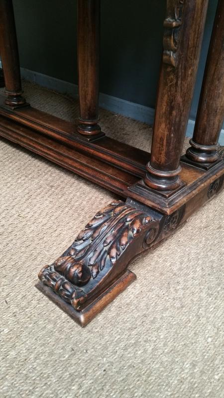French antique Renaissance walnut Desk ;early 19c.th 2 drawers,lons and acanthus leaves carved , ,strong solid walnut ;good old condition with nice patina (with very small accidents with the time ,no insecte ! 1m40 X76cm Hauteur 82cm 55" X 30" H 32"1/4 référence 4394