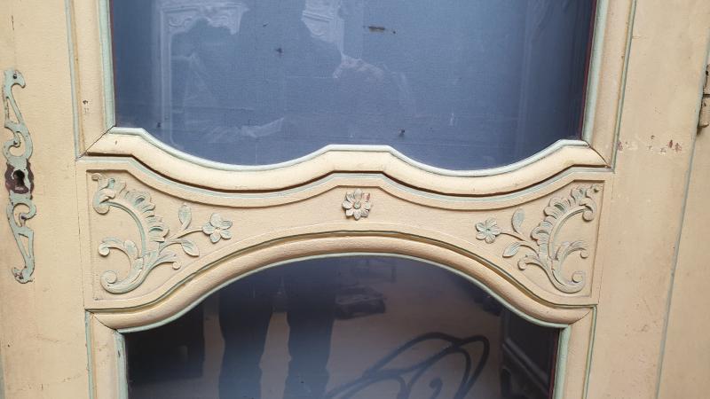 Pair of antique Louis XIV style doors with frame; to make a pair of windows or a pair of bookcases, for example on each side of a fireplace; (the color may not be the right one...) Hauteur totale :2m59 or 102" cornice W W frame ;1m07 or 42" cornice w 43" 3/'4 or 1m11 W door l 82cm or 32" 1/4 référence 4717