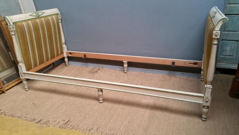 Pretty Bed style Directoire columns of carved beech wood ,medium bed for a person in good condition;solid wood;in good old condition 82" x 34" 1/2 - 34 H Inside 74" 3/4 x 31" 1/4 2m 08 x 87 cm - 87 H Inside 1m 90 x 79,5 cm référence 4907